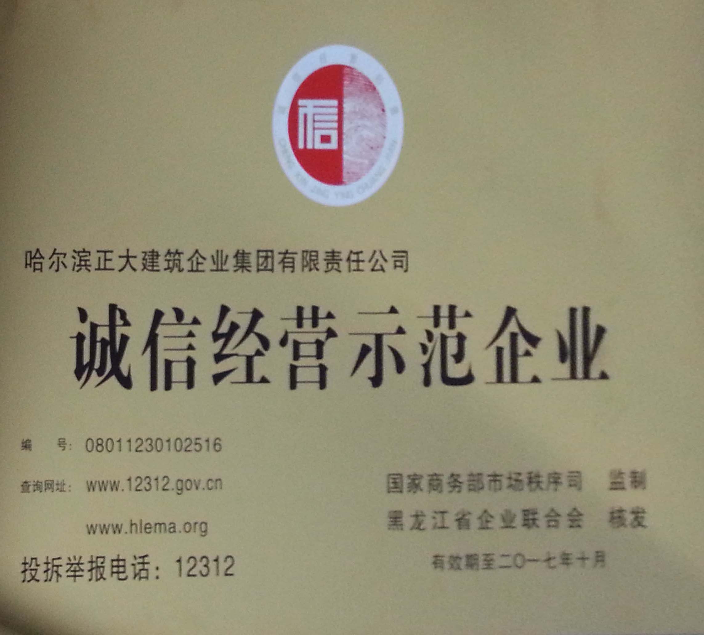 • 黑龍江省誠信示范企業